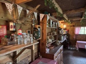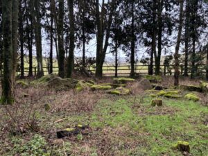 - Woodland areas with natural clearings, a campsite, moss-covered rocks and a carved throne