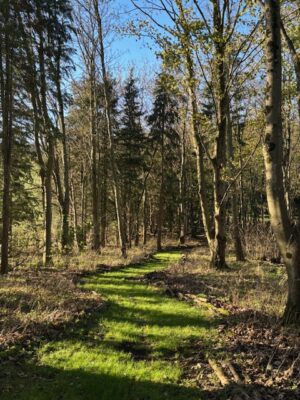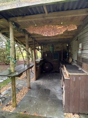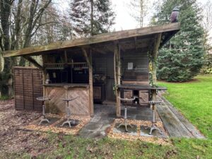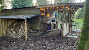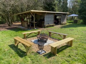 At its heart sits a 1795 Georgian Manor House, complete with a stone-walled garden, offering a classic, historical backdrop. Scattered across the farm are several woodland areas with natural clearings and magical areas (including large moss-covered rocks), a campsite with a cabin, and old stables and farm buildings. The 14-foot high neolithic-style sculpture in one of the main fields, fondly called the Sentinel, provides an interesting focal point.